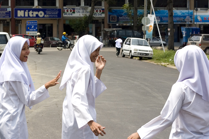 Jakby to napisać: podoba mi się!!! Od trzech dni jestem w Kota Baru, miejscowości w północnej Malezji, która słynie z bycia najbardziej malajaskim miastem w Malezji. Naprawdę mi się podoba. Po pierwsze na ulicach nie ma falangów (białych), nawet jeśli są to tylko tranzytem, pomiędzy wyspami a Tajlandią. 95% kobiet to chustecznice, czyli kobiety zakrywające włosy długą chustą , czasem tak długą że oprócz włosów ginie pod nią całe ciał, cała uwaga przenosi się na twarz, wyłącznie twarz jest miernikiem piękna.